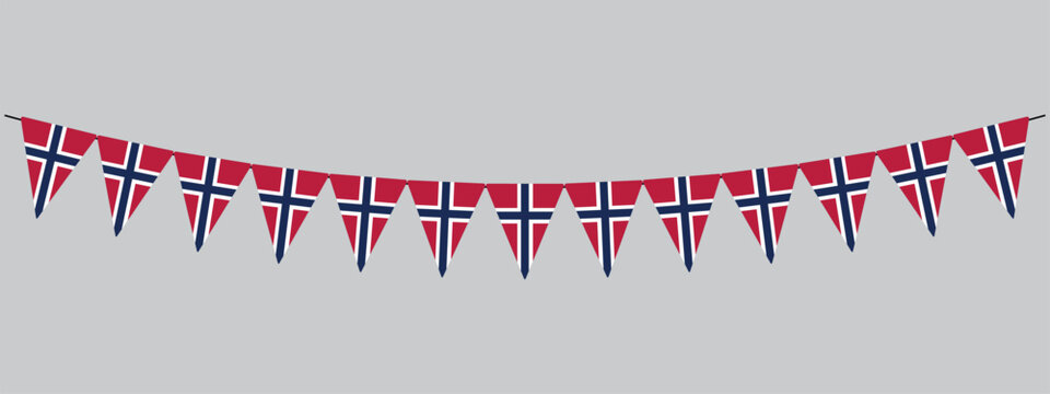 Norway Constitution Day. Happy holiday, celebrated annual in May 17. Norwegian flag. Norway independence and freedom. Patriotic poster. Festive and parade design. Vector illustration