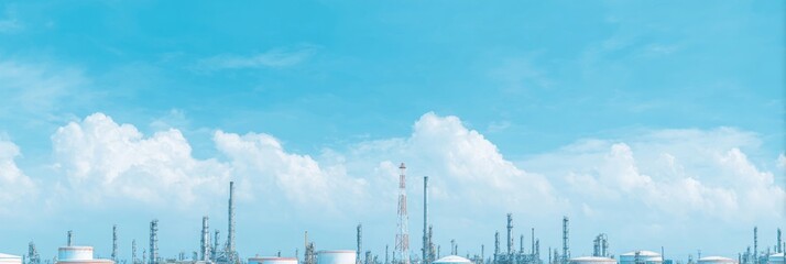 Industrial skyline against azure skies, exuding steampunk nostalgia, celebrating Eco-Industrial Revolution Day and Blue Sky Thinking week