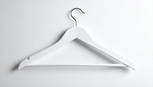 White clothes hanger with notched ends against a clean white background in minimalistic composition.