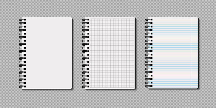Realistic notebooks lined and dots paper page isolated on transparent background. Art design clean spiral notepad blank mockup template