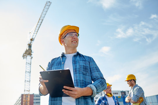 A man conducts a home inspection while reviewing notes on a clipboard in a residential area during daytime