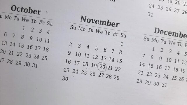 marking 20 November date on the calendar