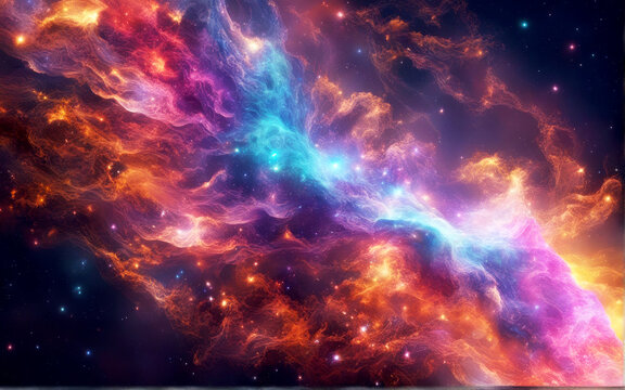 Abstract cosmic background. Colorful background with planets and stars. Colorful space illustration. Generative AI