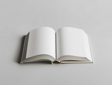 Open Blank Book Resting Flat on Solid Gray Background for Personalized Content Display and Customization