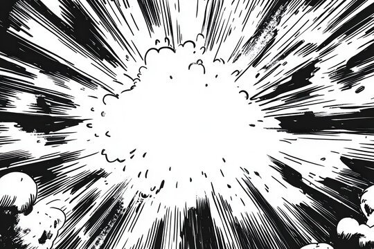 Comic book page background with radial effect. Black and white vector retro illustration