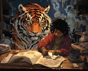 A dimly lit attic filled with old books serves as a hidden sanctuary where an author brings stories to life.