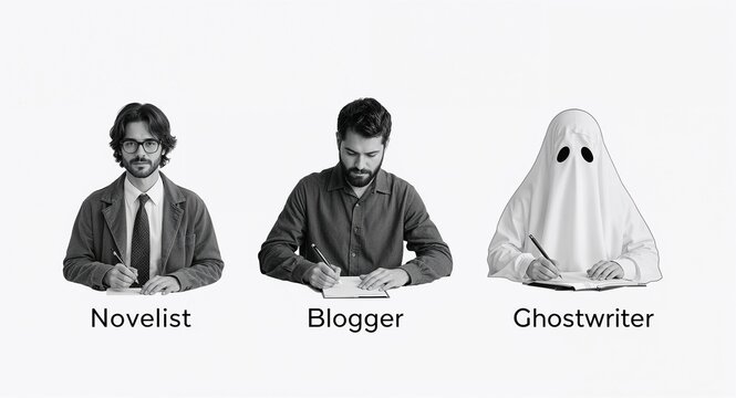 Creative writing professions like novelist scriptwriter blogger poet and ghostwriter on plain white background