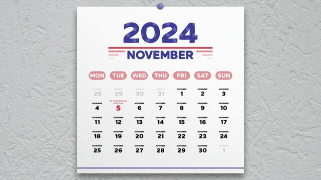 A beautiful November page of the calendar 2024 with the US presidential election date marked on it