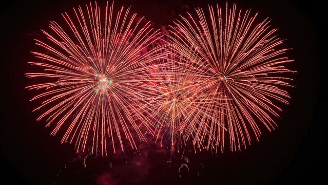 Celebration colorful firework on pattern on sky background concept for USA 4th july independence day, symbol of patriot freedom festive, Abstract happy new year 2024 with copy space for display