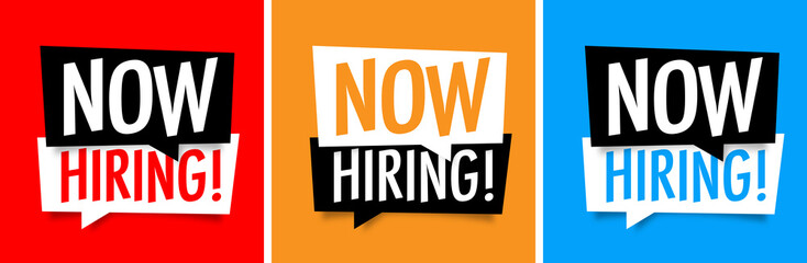We hiring now banner job offer vector background. Hiring promotion megaphone employee illustration