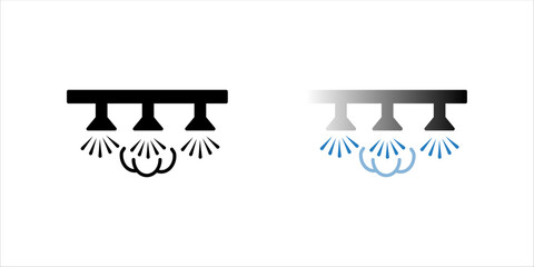 Water sprayer icon set. Also called spider and nozzle spray.Part of water mist system used to spray liquid or humidity fog watering. To apply herbicide, pesticide and fertilizer on agricultural crop.