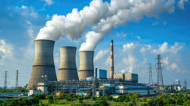 Aerial view of nuclear power plant scene, Camera slow motion with different angles