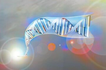 Colorful illustration of a DNA double helix molecule structure, showcasing twisted ladder-like shape with nucleotide bases and sugar phosphate backbone in microscopic detail.