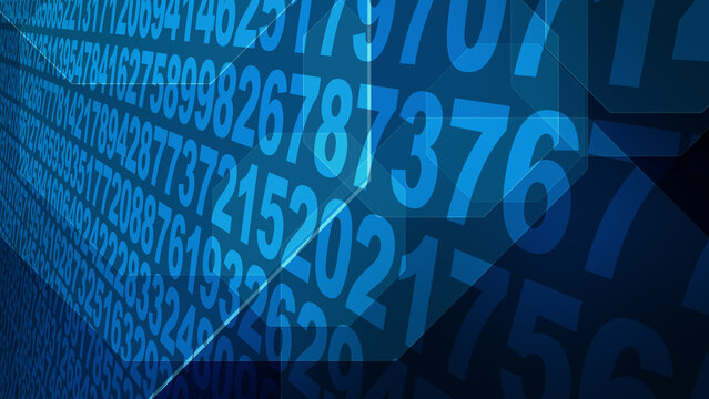Data science abstract background with digital numbers, random sequences, and numerical algorithms for machine learning and data analysis