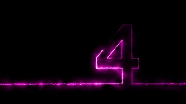 number FOUR. Animation Neon light Number 04. Neon Glowing Symbol Neon numbers 4 glowing on an alpha channel background 4k animation