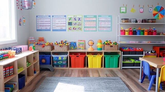 Children learning literacy and numeracy with vibrant supplies on desk top view