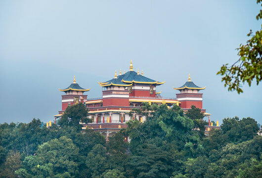 The beautiful Kopan Monastery architecture building is also known for its Khachoe Ghakyil Ling Nunnery. Kathmandu, Nepal. Traveling, tourism, architecture and Buddhism religion concept photo.