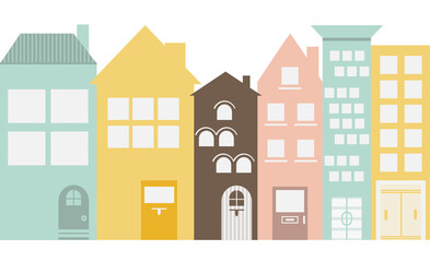 Wall art, wallpaper, wall sticker, children's room decor. Nursery wall art, Vector illustration. Scandinavian style. Cute city, village background design.