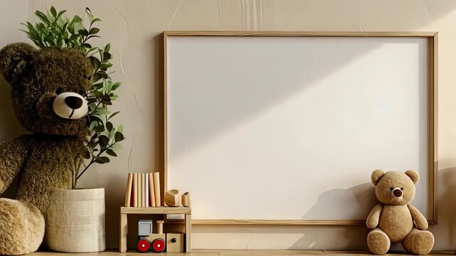 Cozy room features lovely teddy bears and a blank space perfect for creativity and imagination in a playful environment for kids
