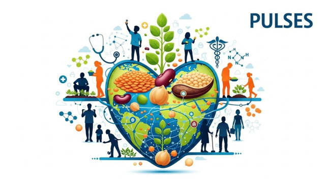 Healthy heart shaped earth with diverse people pulses and medical symbols representing global health and nutrition awareness