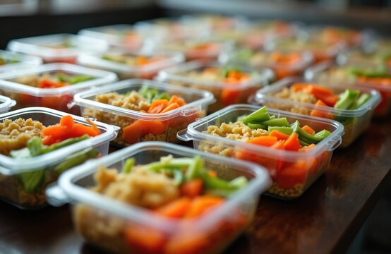 Healthy meal prep containers with grilled chicken and diverse fresh food options in convenient takeaway boxes for nutritious on-the-go meals video download