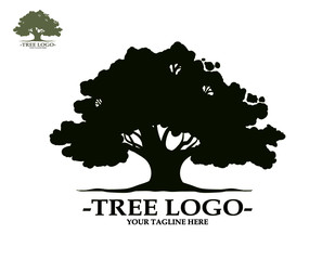 Oak tree logo illustration. Vector silhouette of a tree.