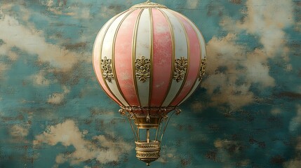 Whimsical deer figurine, gold antlers,  soft clouds.