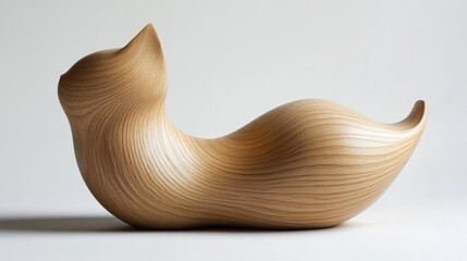 Elegant Wooden Cat Sculpture: A Study in Form and Texture