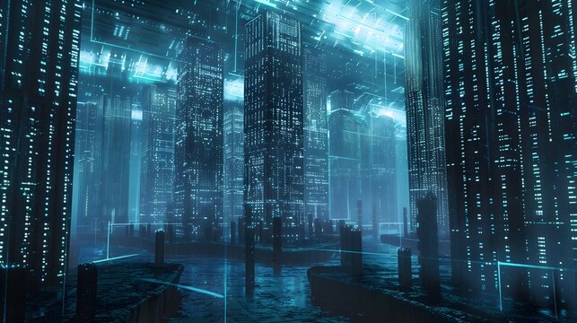 A fortress of encryption surrounded by a sea of binary code, guarded by digital sentinels, ensuring the complete obliteration of data before it vanishes into the digital abyss