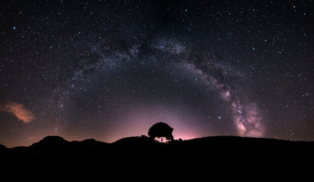 night, starry sky above the astronomical observatory in the Teide volcano national park in Tenerife