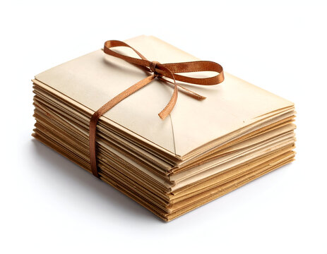 Stack of aged papers tied with a vibrant red ribbon, evoking nostalgia and treasured memories, perfect for storytelling and sentimental projects.