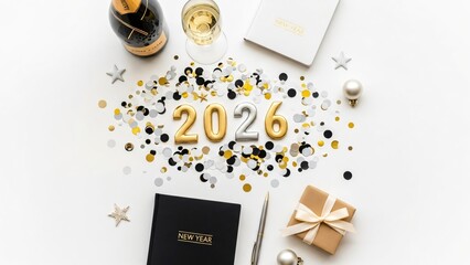 Golden New Year 2026 Celebration Champagne Gift Ideas Luxury Party Decorations & Notebooks