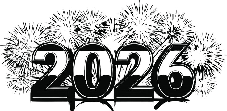 Bold Black Numerals Representing the Year 2026 Isolated on White Background