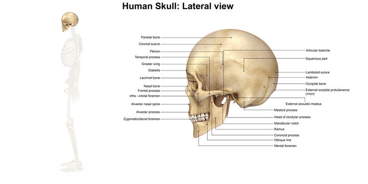 Human Skull Anatomy: Detailed View of Cranial Bones and Teeth