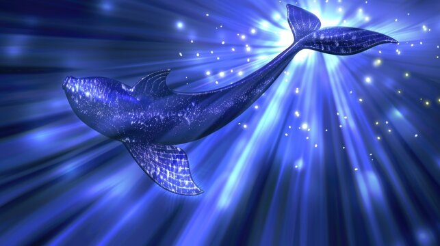 Shimmering mermaid silhouette in dark waters. Fantasy ocean theme for artistic design.