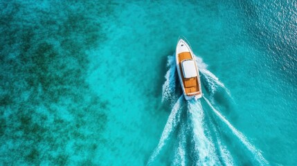 An elegant yacht moves gracefully over crystal-clear waters, epitomizing luxury and leisure, surrounded by a vibrant kaleidoscope of colors in a breathtaking oceanic vista.