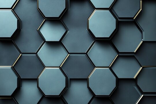 Black abstract seamless pattern with black hexagons. Hexagons texture pattern background copy space. Black abstract geometric shapes. Minimalistic black background