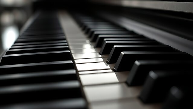 octet. Close-up of piano keys in black and white pattern, elegant musical instrument detail. lifestyle magazines, social media lookbooks, designed for influencer and brand collaborations.