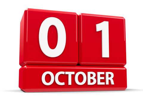 3d rendering of important days concept. October 1st. Day 1 of month. Red date written and pinned on a calendar. Autumn month, day of the year. Remind you an important event or possibility.