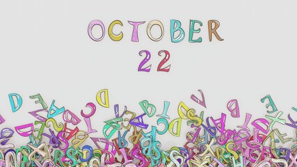 October month 22 date calendar Page with Clock Icon animation on white Background. Digital calendar month concept design.
