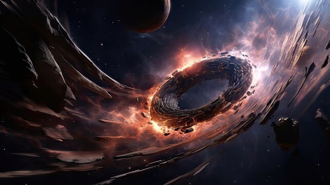 Embark on a thrilling odyssey as a spacecraft delves into a wormhole. Space-time manipulation, intergalactic journey, cosmic distortion, futuristic exploration, mind-expanding. Generated by AI.