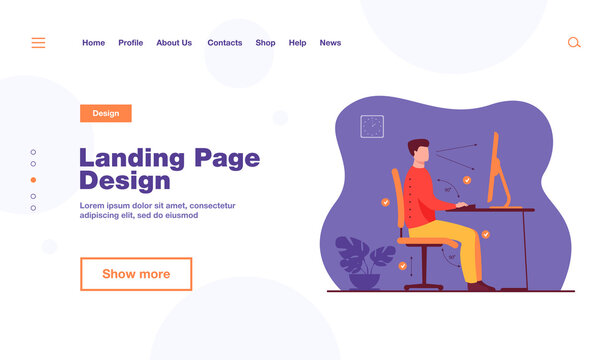 Correct good position vs bad incorrect posture for sitting at computer desk. Deterioration of vision. Right and wrong back, neck and legs poses of woman at workplace. Vector illustration.