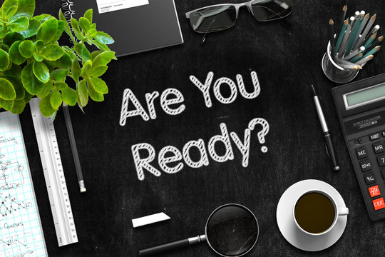 Black Chalkboard with Are You Ready. 3D Rendering.