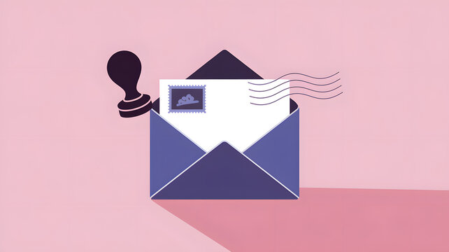 A white envelope on a black stand next to paper and a pencil is a symbol of official correspondence and business communications. For illustrating business processes, mailings, and stationery.