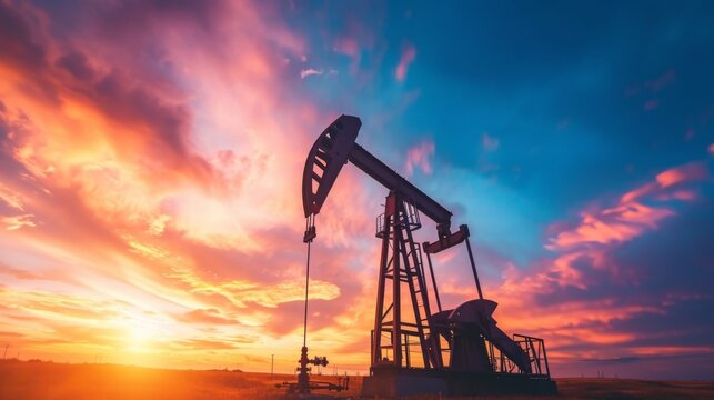 Petrol, fuel, oil production and fossil resources. Pump oils drilling derricks in fields. Energy crisis concept. AI image