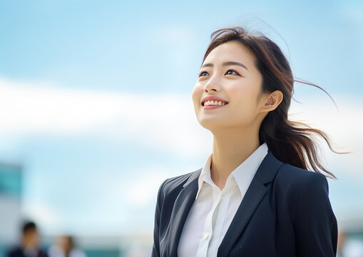 白背景に日本人女性ビジネスパーソンのイラスト「AI生成画像」
