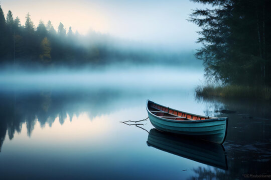 Wooden fisherman boat for fishing or kayaking extreme sports and entertainment