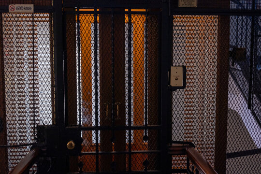 Vintage room, empty retro apartment with old fashioned wallpaper and weathered wooden parquet floor, toned