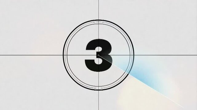 5 seconds vintage film countdown, counting from 5 to 0 seconds, Old film movie timer count in grey retro style.