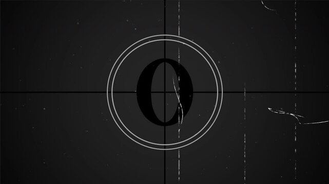 5 seconds old film countdown animation with black background. Countdown movie from 5 to 0 number.  4k footage video animation